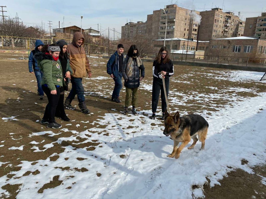 Այսօր մեր տեխնոլոգիաի խմբով գնացինք ագարակ։ Այս անգամ ման էինք տալու շան։ Նրա անունը Ռոքսիկ էր։ Ռոքսիկը շատ խելացի շուն էր, նա չորս տարեկան էր։ Ես շատ հավանեցի Ռոքսիկին։ Մենք խաղացինք նրա հետ, որից հետո էլ ամբողջ դաշտով ման տվեցինք նրան։Շատ լավ ժամանակ անցկացրինք այտեղ։Իսկ միուս անգամ նաև խնամելու ենք շներին։